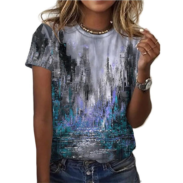 Style: Women Summer Tunic Blouse, Women Painting Print Tops, Women Casual Loose T Shirt, Short Sleeve Tee, Crew Neck Shirts