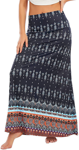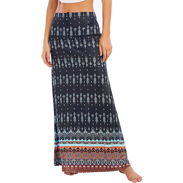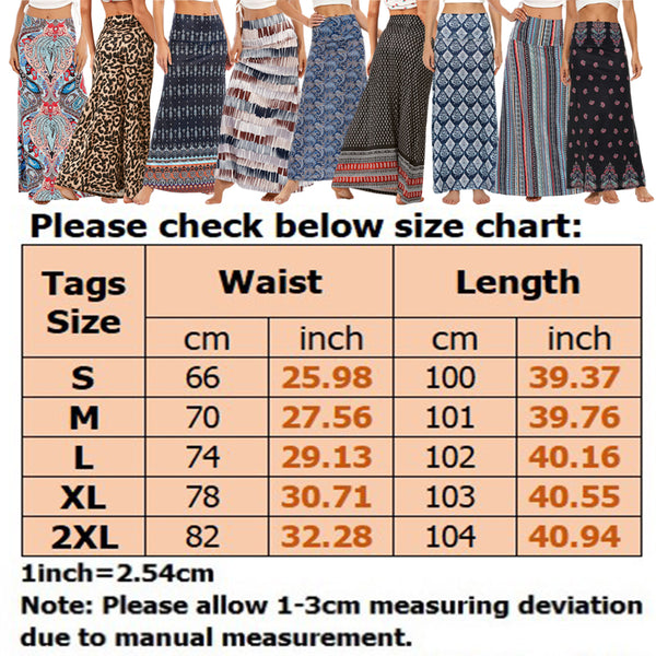 Women Boho Beach Skirt Elastic Waist Long Maxi Skirt Summer Casual Loose Skirts