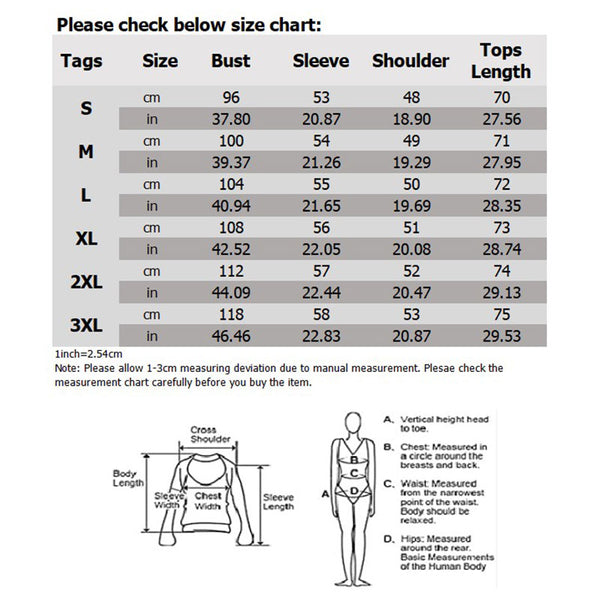 Size: S, M, L, XL, XXL, 3XL (Follow the size chart to select please)