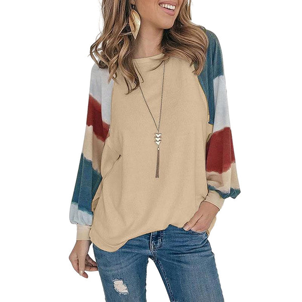 Style: Women Long Sleeve Colorblock T Shirt Blouse