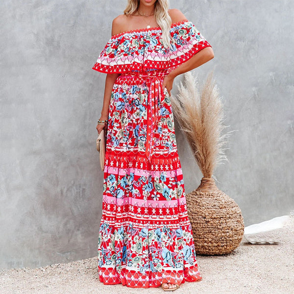 Style: Women Off Shoulder Maxi Dress Beach Sundress