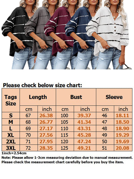 Style: Women Casual V Neck Loose Long Sleeve Shirt Button Stripe Top Blouse Sweatshirt