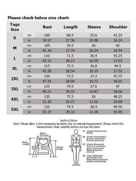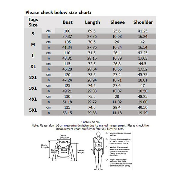 Size: S, M, L, XL, XXL, 3XL, 4XL, 5XL (Follow the size chart to select please)