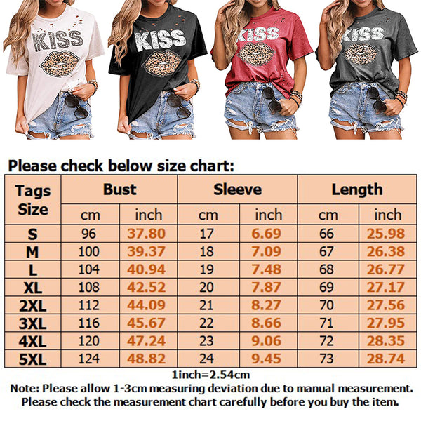 2. Design: Leopard Print, Hollow Out Short Sleeve Tops, Lips Print Crew Neck Tee Shirt, It Is Fashionable and Chic.