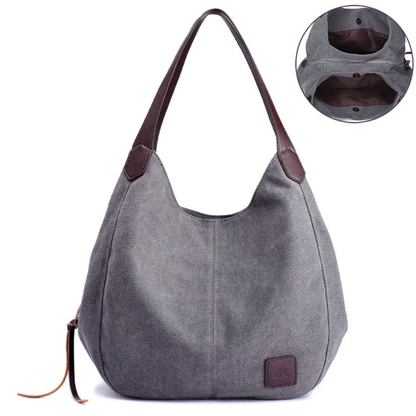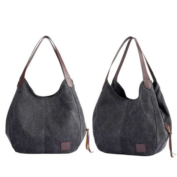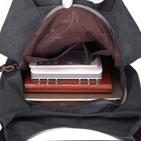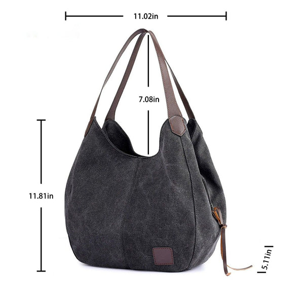1. Three interlayer, can easily divide or organize your items.Made of durable canvas, elegant and practical, match various clothes and occasions.