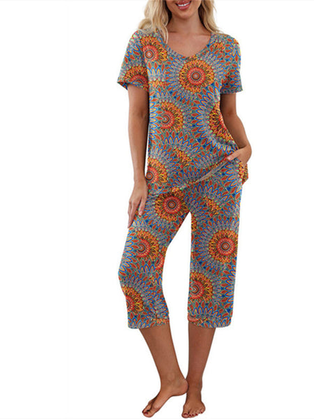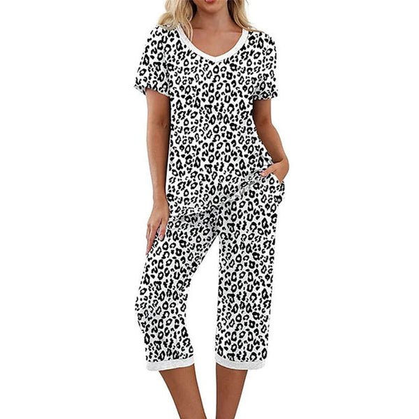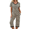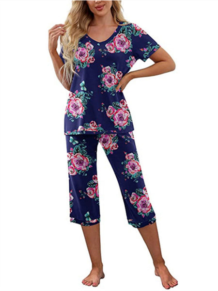 Women Floral Pajama Set Sleepwear Tops with Capri Pants Outfits Ladies Summer Comfy Sleep Nightshirt PJS Set