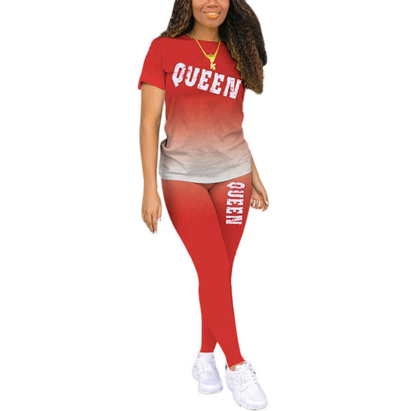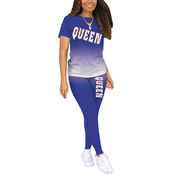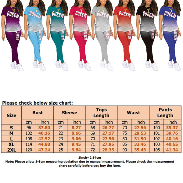 Women Gradient Color Pajamas Set Short Sleeve Tops Leggings Homewear Loungewear