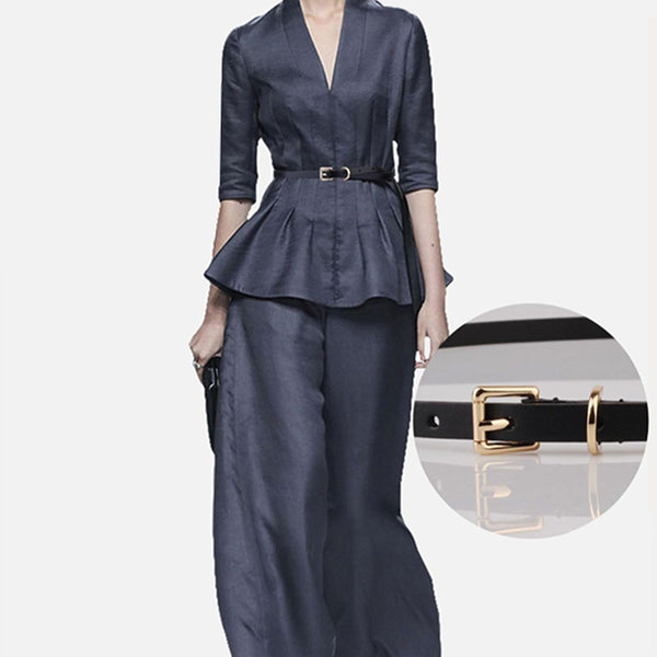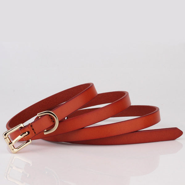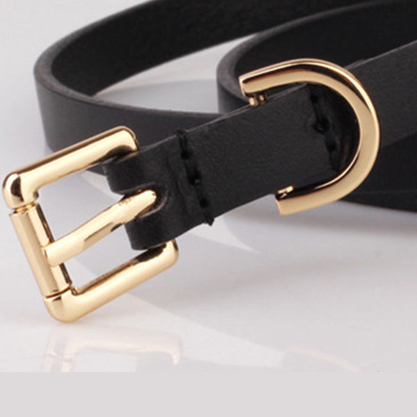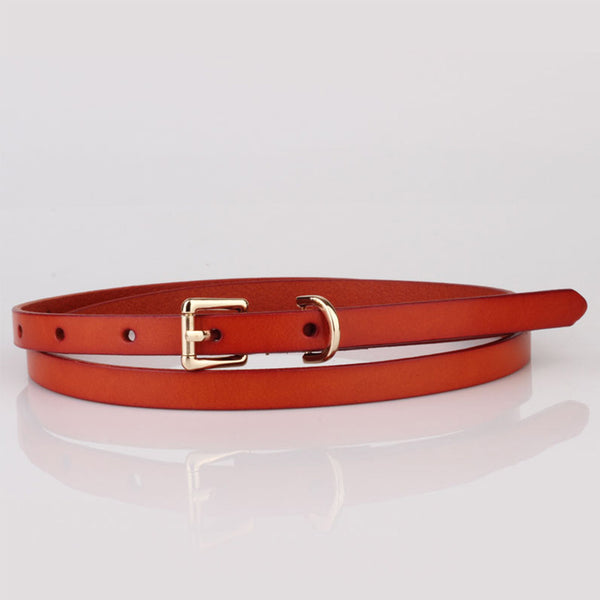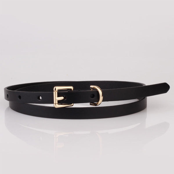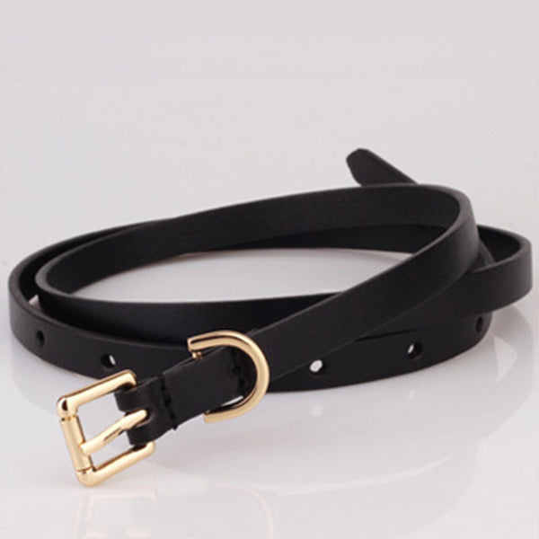 2. Solid pin buckle skinny thin waist belt in black and brown two colors to match your different outfits and give you the classic look.