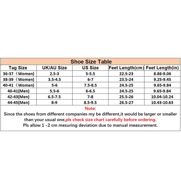 Size: 36-41(Women), 40-45(Men) (Follow the size chart to select please)