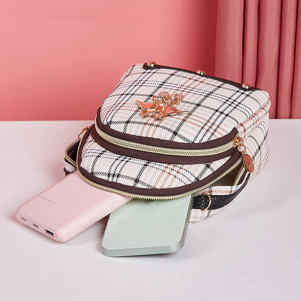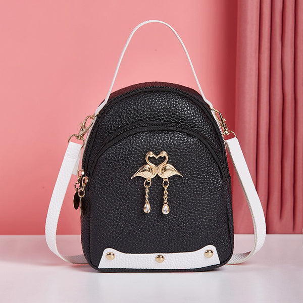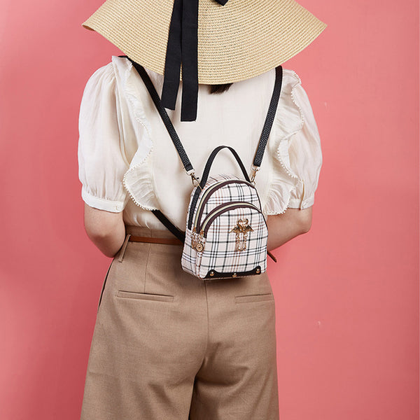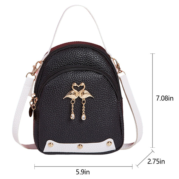 1. Mini cute backpack with enough room for your daily essentials. Main pocket for phone, passport, driver's license, power bank, wallet, lipstick, sunscreen cream, cosmetic, paper towel. Front zipper pouch for important small things like credit cards, ID card, cash, keys or coins.