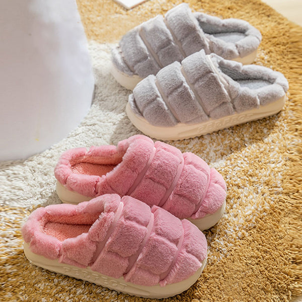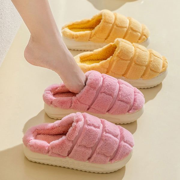 2. Exquisite material and skin friendly plush lining pampers your feet in warm and cozy softness, meanwhile gives these house slippers an elegant appearance.
