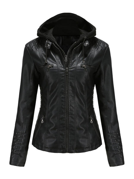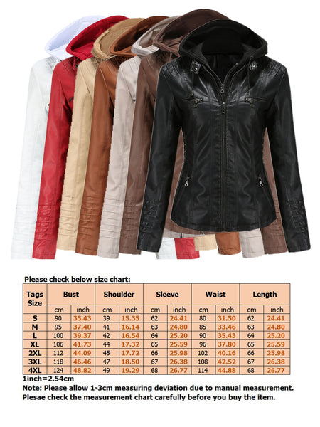 Women Punk Hooded Jacket Biker Motorcycle Coat Outwear Overcoat Detachable Hood