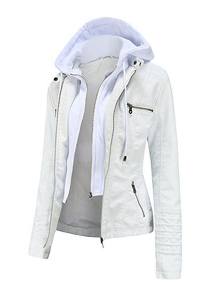 Style: Women Long Sleeve Hooded Jacket Biker Short Coat Outwear