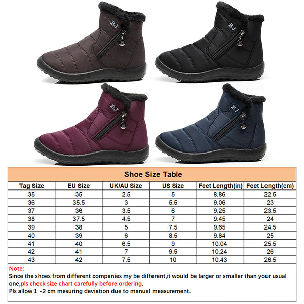 1. A great and comfortable design, waterproof cloth upper, round toe, flat heel, easy pull-on style with zip closure, finished with lightly man made insole for the best comfort.