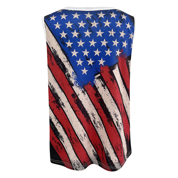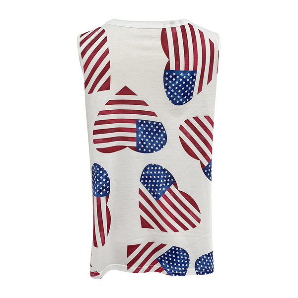 Style: Women Sleeveless Vest Shirt, Flag Print Blouse, Casual V Neck Tank Tops
