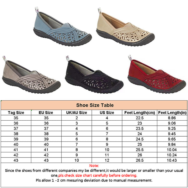 1. These shoes feature a hollow decor, flat heel and slip on. You'll never want to take this classic comfort walking shoes off.
