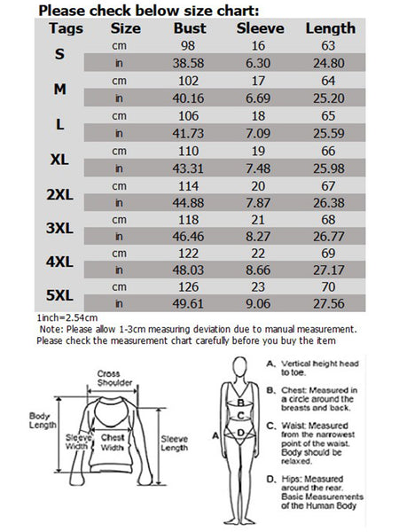 Size: S, M, L, XL, 2XL, 3XL, 4XL, 5XL (Follow the size chart to select please)