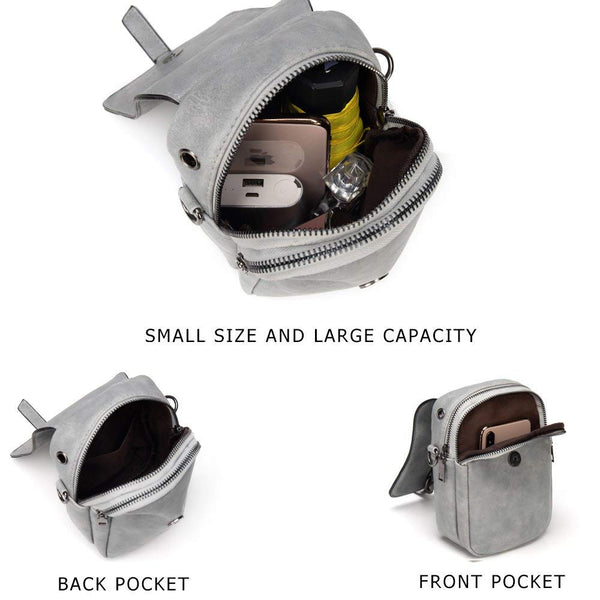 2. Large Capacity: The cell phone purse has 2 zipper pockets ,the outer layer can be convenient for storing your cellphone, an inner layer that can hold power bank, credit cards, keys, lipsticks, mascara, headphones, cash, and other small items. Two separated pockets make organization easier and safer.