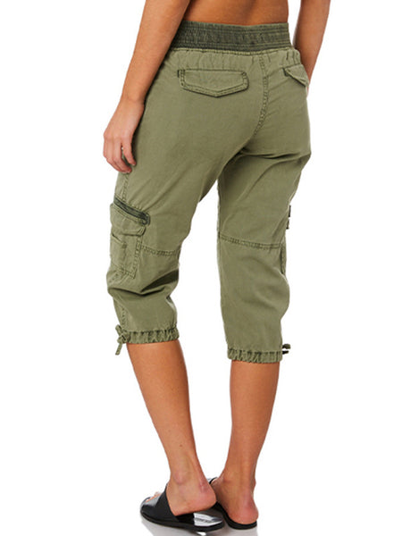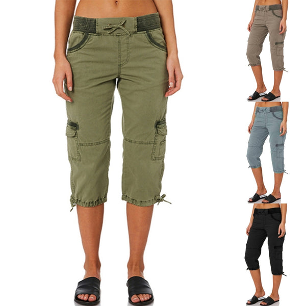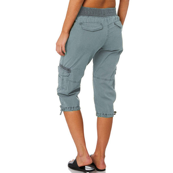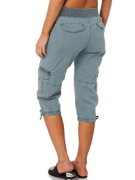 Style: Women Solid Color Capri Pants, Straight Leg Cropped Trousers, High Waisted Cargo Pants, Casual Lounge Pants