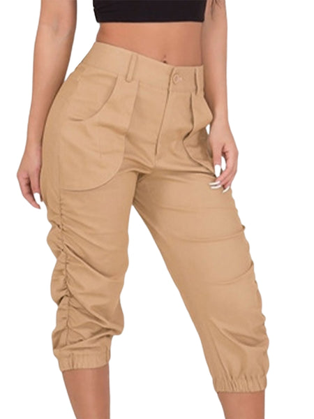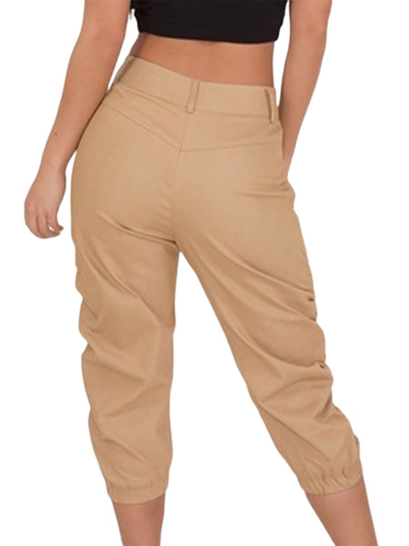 Women Zipper Bottoms Boho Solid Color Trousers Beach Pants Harem Loungewear