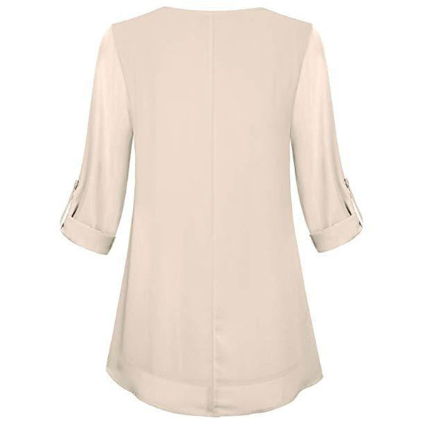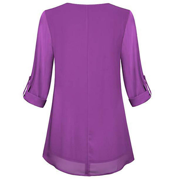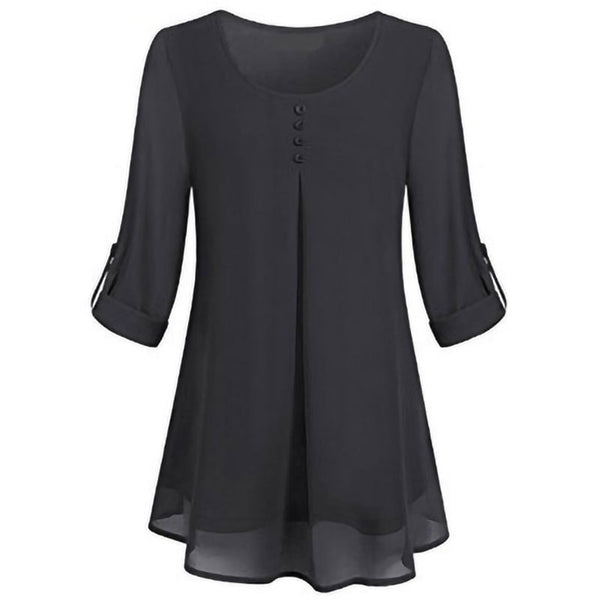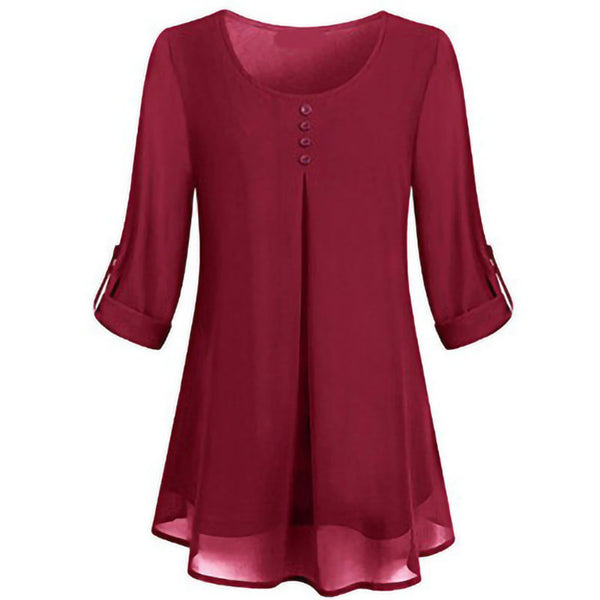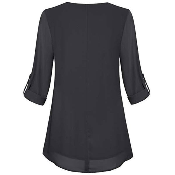 Women's Adjusted 3/4 Sleeve Crew-Neck Chiffon Shirt Casual Loose Pullover Blouse