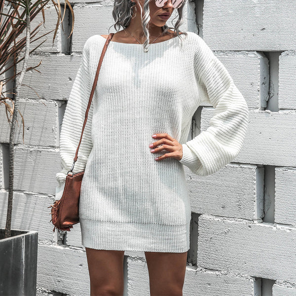 Style: Women Knitted Mini Dress Puff Sleeve Short Sweater Dresses
