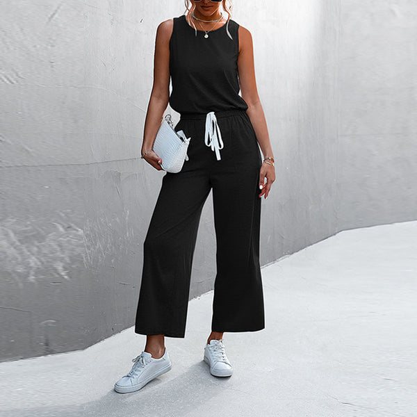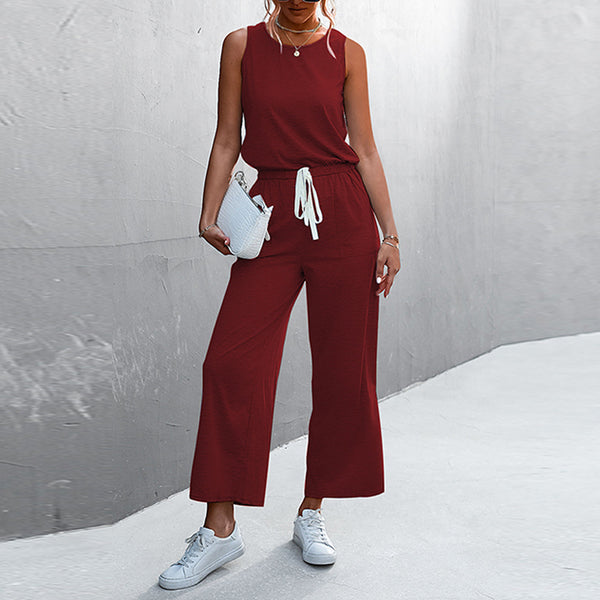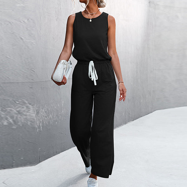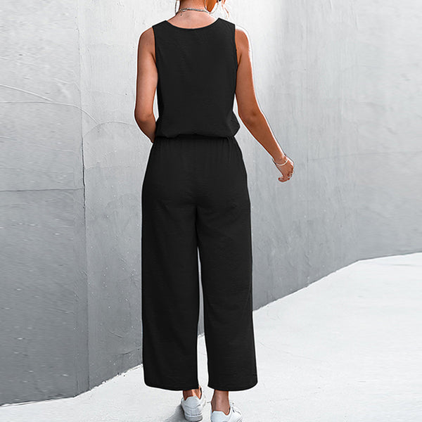 Womens Casual Solid Color Sleeveless Jumpsuit Long Pants