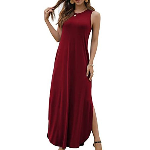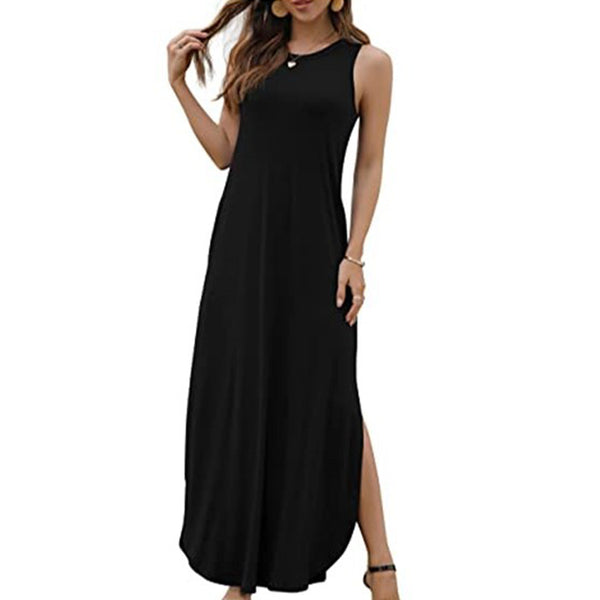 3. Feature: Boho Tank Dresses with Pockets, Sleeveless Baggy Dress, Solid Color Slit Vest Dress, High Waist Beach Sundress, Trendy And Elegant