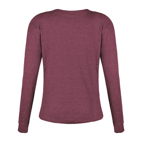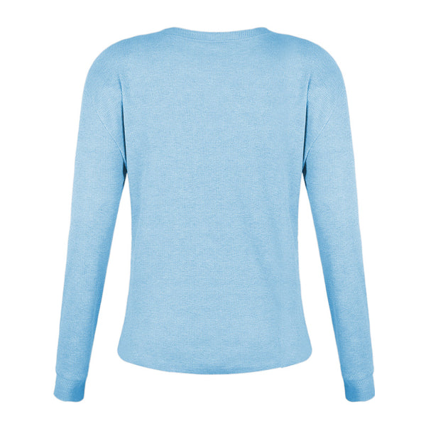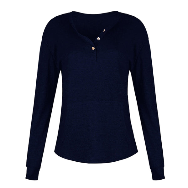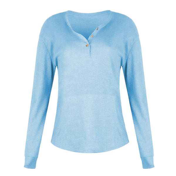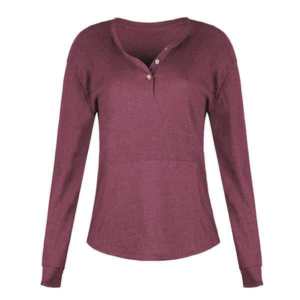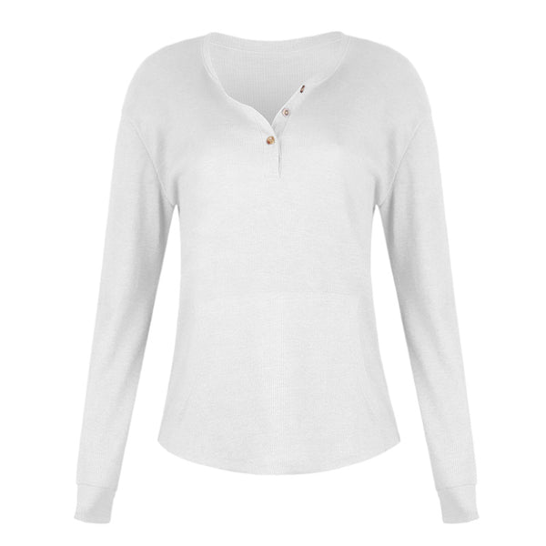 Style: Women Front Button Long Crochet Pockets Sleeve Lightweight Rib Tee Shirt Top