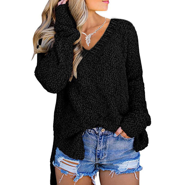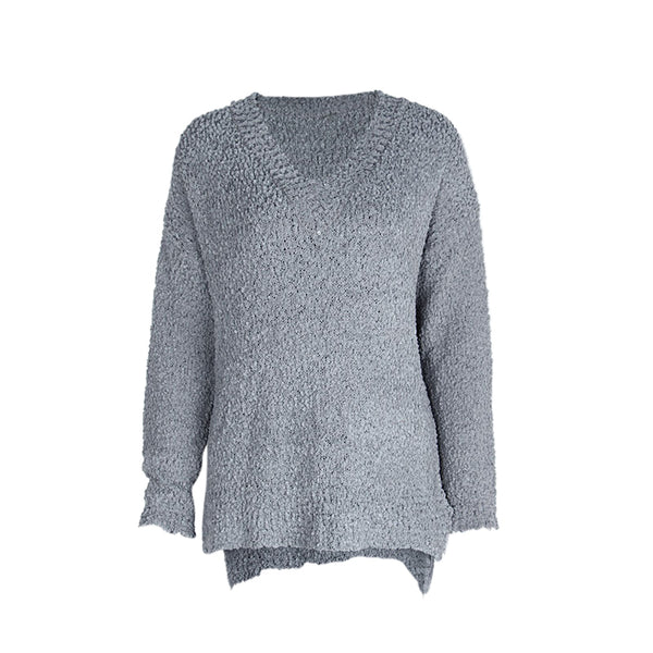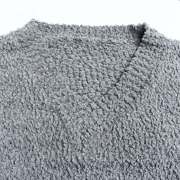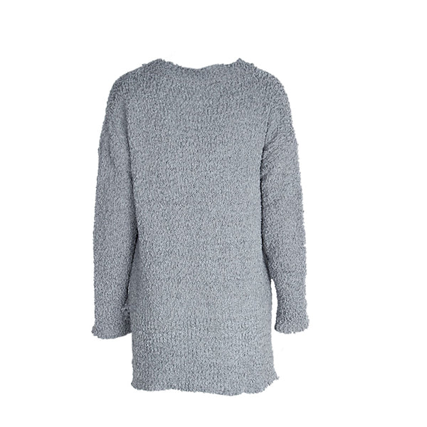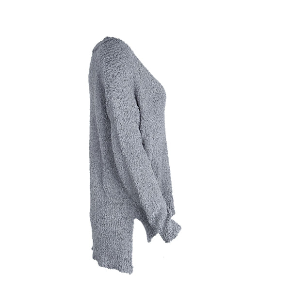 Womens Fuzzy Knitted Sweater Sherpa Fleece Side Slit Full Sleeve Jumper Outwears
