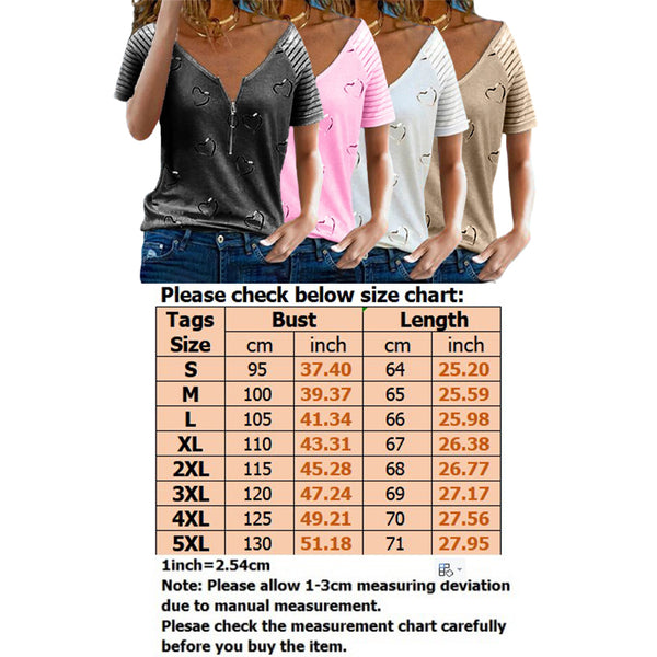Women's Heart Printed T-Shirts Short Sleeve Summer Casual Round Neck Plus Size