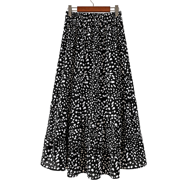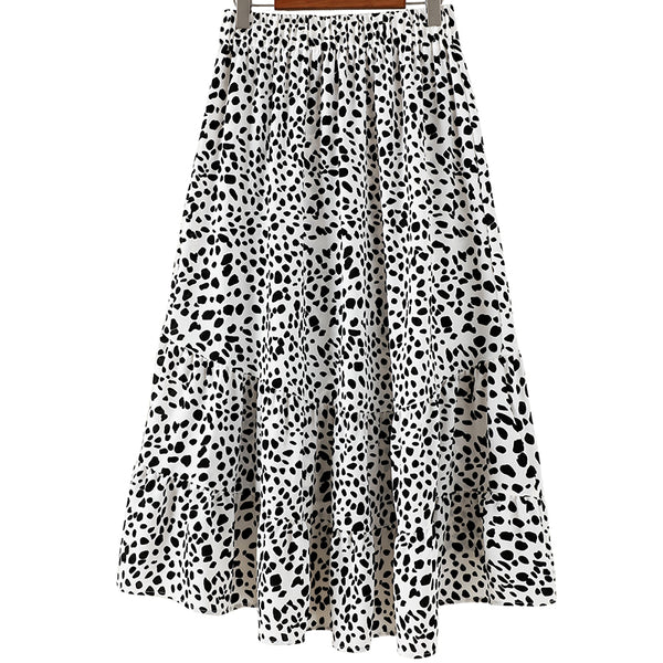 2. Women midi skirt, elastic waist, polka dot bohomian design, irregular hem midi skirt.