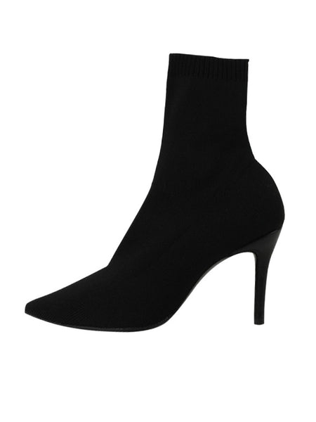 2. These boots feature a pointed toe, solid color and kitten heel.