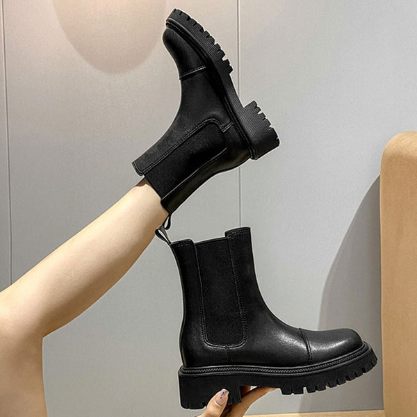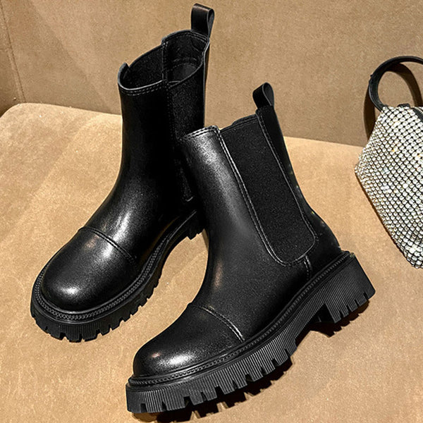 1. More environmentally friendly microfiber, The chunky heels slip on ankle boots are all in solid color, very fashionable.