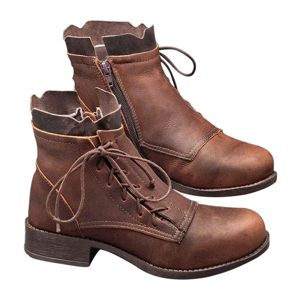 Women's Lady Ankle Boots Low Heels Casual Shoes Lace Up Zip Punk Combat Booties