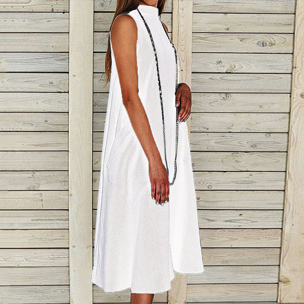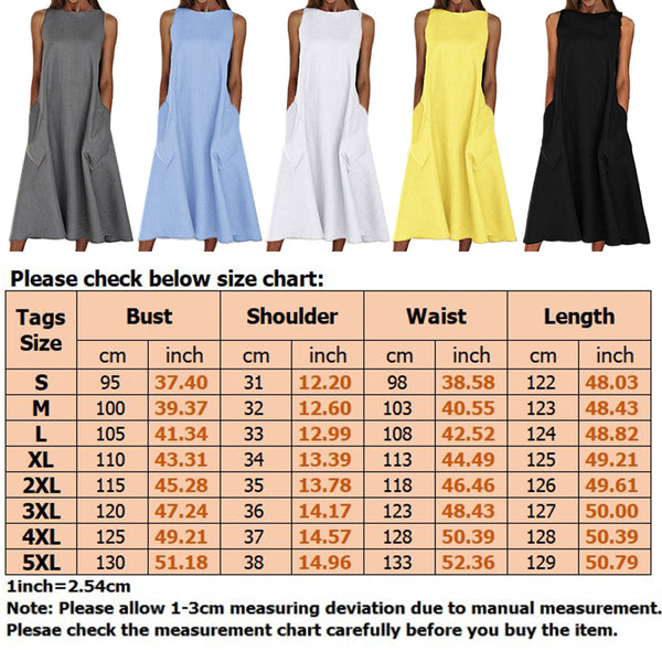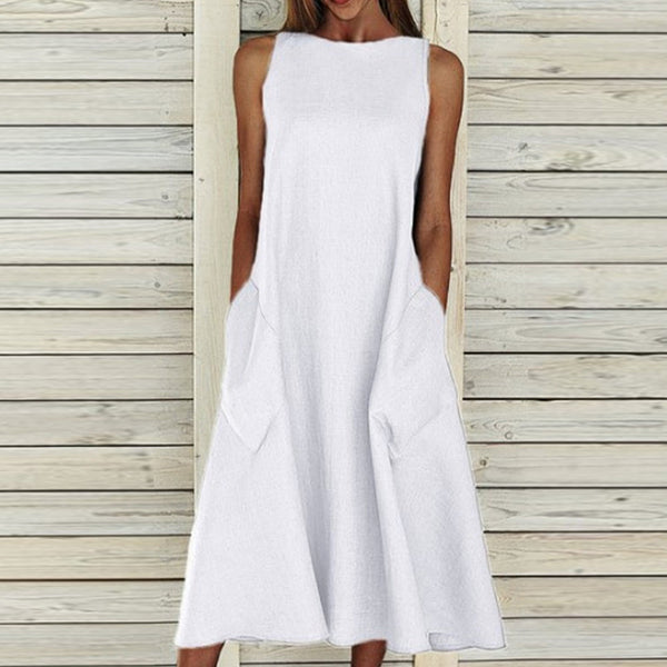 Style: Ladies Linen Dress, Sundress, Midi Dress, Long Vest Dress, Long Tops Dress, Pockets Dress