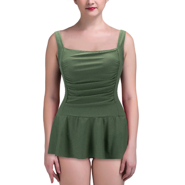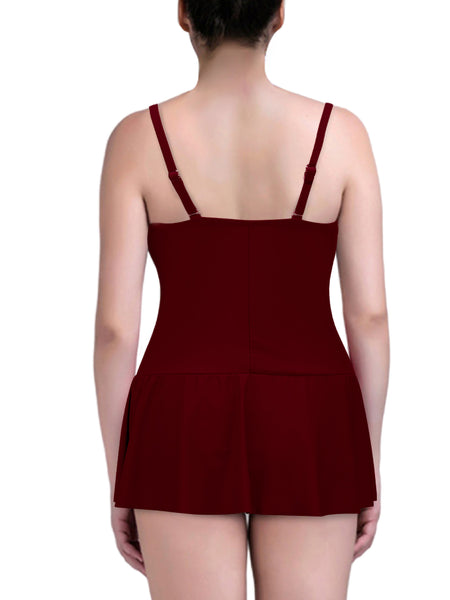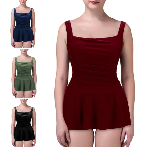 Womens One-Piece Skirted Tankini Swimwear Swim Dress Bikini Swimsuit Push-up Bra S M L XL XXL