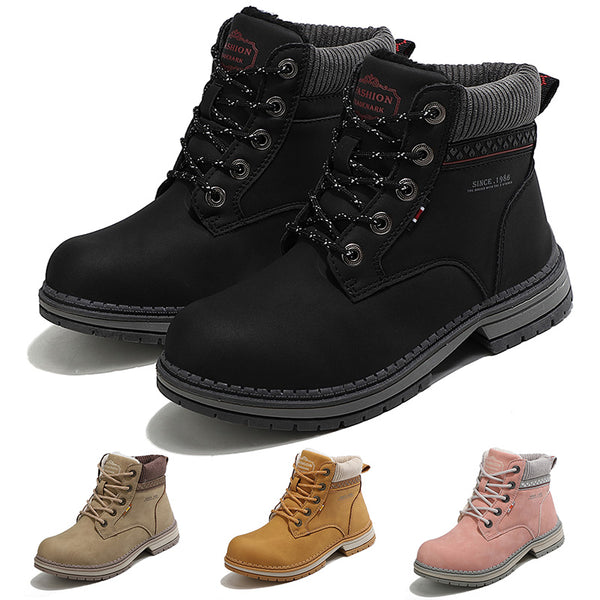 1. Artificial pu upper boots, thickened cold lining, classic winter boots design, above ankle height, side lace up closure design.