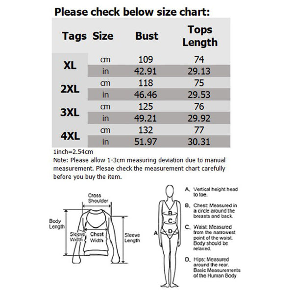 Size: M, L, XL, XXL, 3XL, 4XL (Follow the size chart to select please)