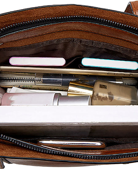 3. Large capacity, 1 exterior open pocket, 1 middle zipper pocket, 1 side zipper pocket for wallets, 2 compartments open pockets for keys/card . iPad, A4 magazine, portable textbooks, wallet, phone, cosmetic,all stuff can be well organized inside.