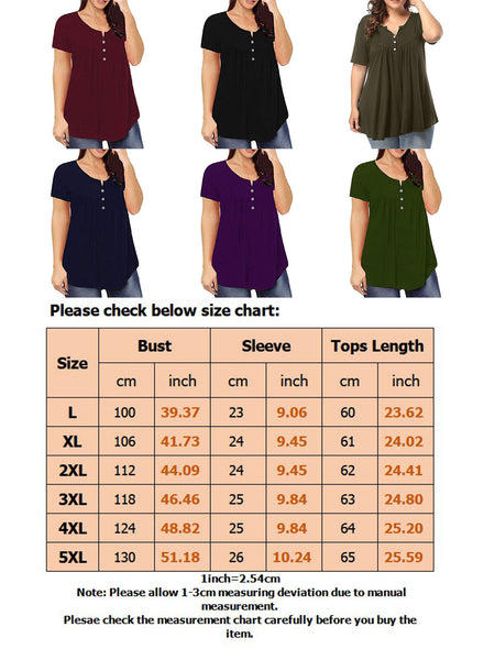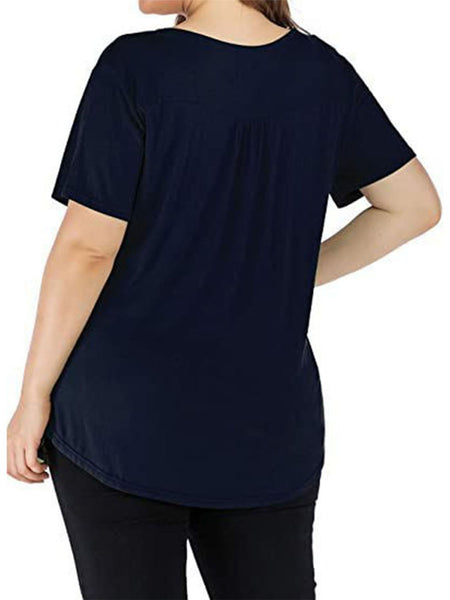 Style: Women Plus Size Button-neck Solid Color Casual Shirt Top