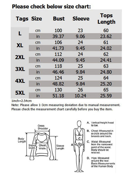Size: L, XL, XXL, 3XL, 4XL, 5XL (Follow the size chart to select please)