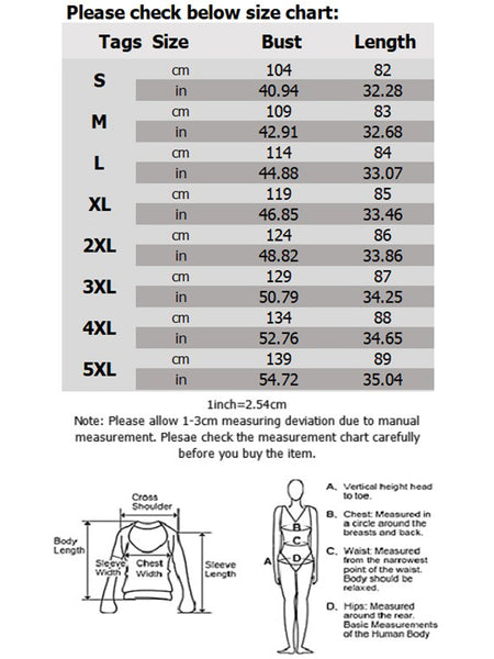 Size: S, M, L, XL,XXL, 3XL, 4XL, 5XL (Follow the size chart to select please)