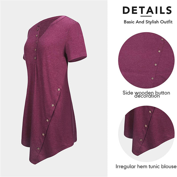 3. Feature: Women Loose Tee Shirt, Women Solid Color Tee Blouse, Women Buttons Tunic Tops