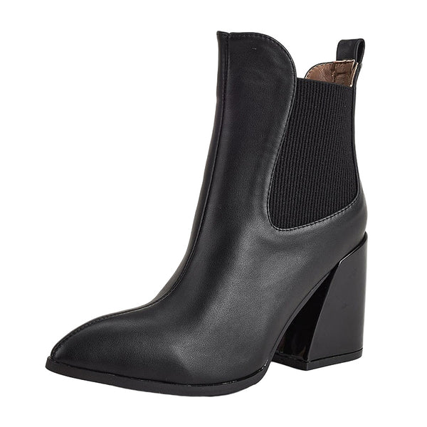1. Artificial PU upper boots, classic winter boots design, ankle height, slip on design.