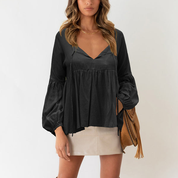 Pattern Type: Puff Sleeve, Solid Color, Ruched