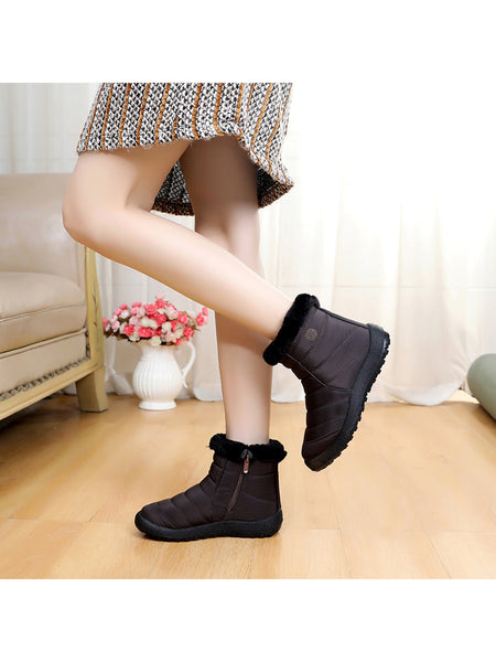 Style: Womens Solid Color Round Toe Slip On Ankle Boots