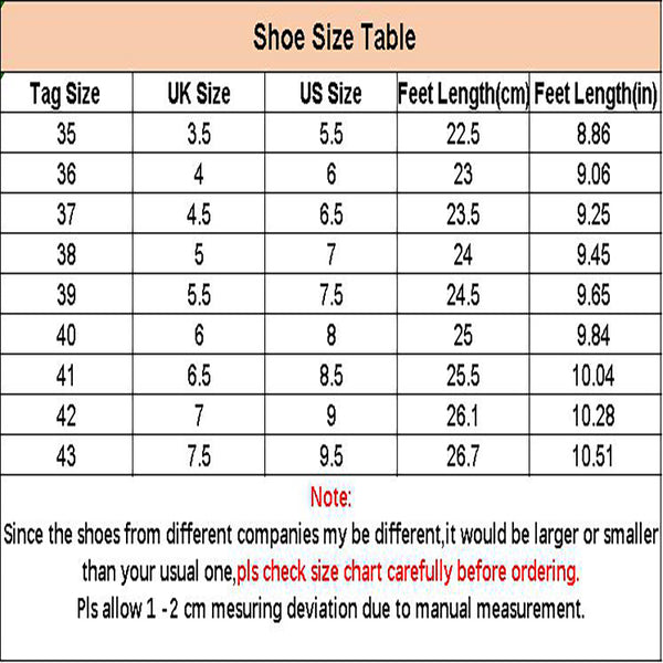 Size: 35, 36, 37, 38, 39, 40, 41, 42, 43 (Follow the size chart to select please)