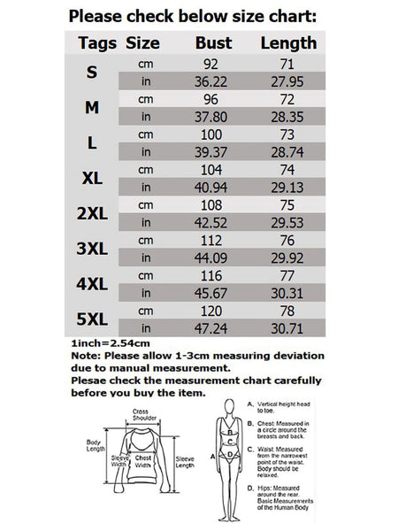 Size: S, M, L, XL, XXL, 3XL, 4XL, 5XL (Follow the size chart to select please)